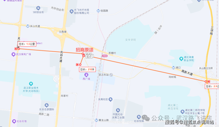 地铁:项目与地铁2、11号线的换乘站武汉东站直线距离约600米左右。不过项目紧临的是武汉东站西广场,而2号线和11号线都在武汉东站的东广场,如果坐地铁需要从西广场穿过火车站至东广场,或者走自主街-百川路绕行到东广场,实际步行距离要远一些。