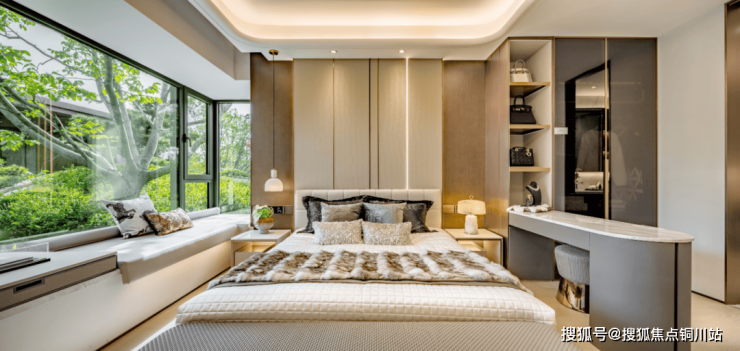 尤其是主卧套房空间,配备270°观景飘窗及独立卫浴空间,预留步入式衣帽间空间,集起居、衣帽、收纳、独卫四大功能于一体,最大化地保证了私密感、舒适度、功能性的三重利好。这里不仅以小家化设计打造出一个完整的“自我世界”,更营造出一个可以完全放松和享受自我的静谧天地。
