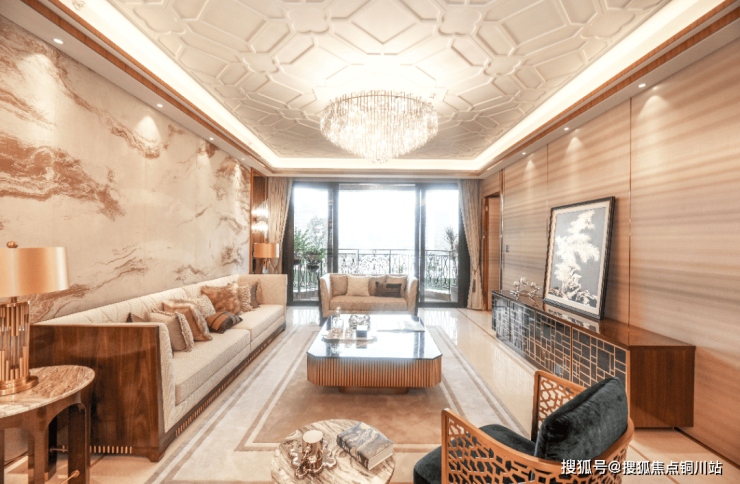 海棠角、云纹、蚕丝布、玉石等中华传统建筑语言,搭配古铜色不锈钢、钢化玻璃、扪皮等国际时尚元素,细节毫厘斟酌,东西方审美和谐交融。大部分主材及器具、设备都坚持甲供,由集团统一采购,从选材至成品,都经过严苛品控后,才予施工方使用。全屋采用全球领先的国际一线家电、卫浴品牌,指触所及,尊崇备至。