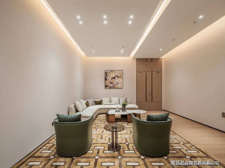 项目借鉴“酒店化”的设计语言,中宁府以“U字型超长界面+开阔进退美学+立体沉浸思考”的骨架语言架起建筑本体,为归家业主或是访客提供了由动至静的缓冲区域。
