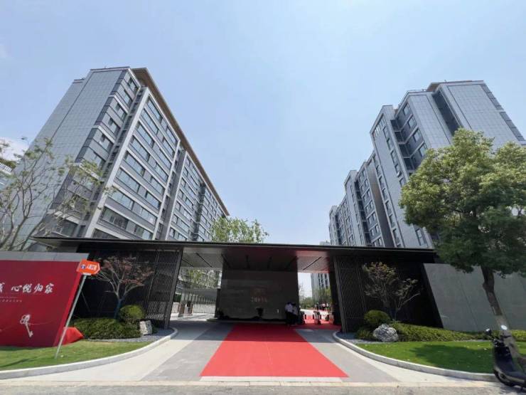 交付现场仪式感十足,从小区门口开始,一路红毯相迎,十分喜庆。