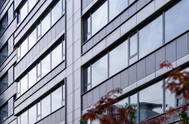 翰林雅境的外立面采用保温一体板与铝板线条结合,超高窗墙比不仅能给居住带来更为优越的通透视野,同时也增加了小区外立面的美感。