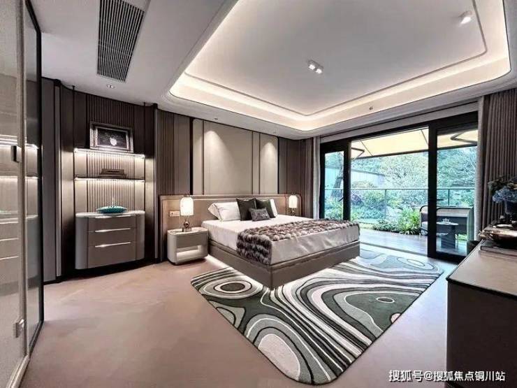 ③超大主卧:建面约183㎡南北露台户型的主卧,不仅配备有双台盆、四分制主卫,还单独设置了衣帽间,加上奢阔休息区和南向超大飘窗,彰显出主人的气场与气度。