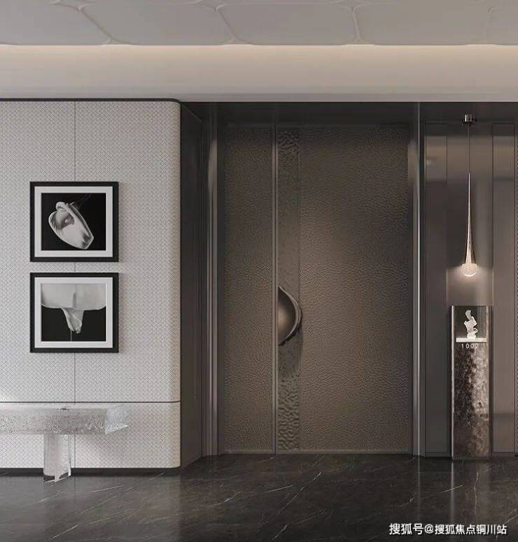 玄关柜采用奢侈品同款的天然贝母材质,虹彩珠光在光影间流转,宛若一幅动态艺术画。