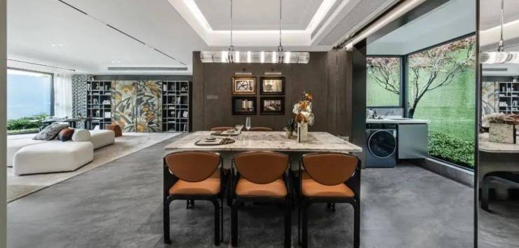 包括公建化外立面,是以三段式结构打造,“真石漆+金属漆+铝板+ Low-E玻璃”的材质对标豪宅,历久弥新。
