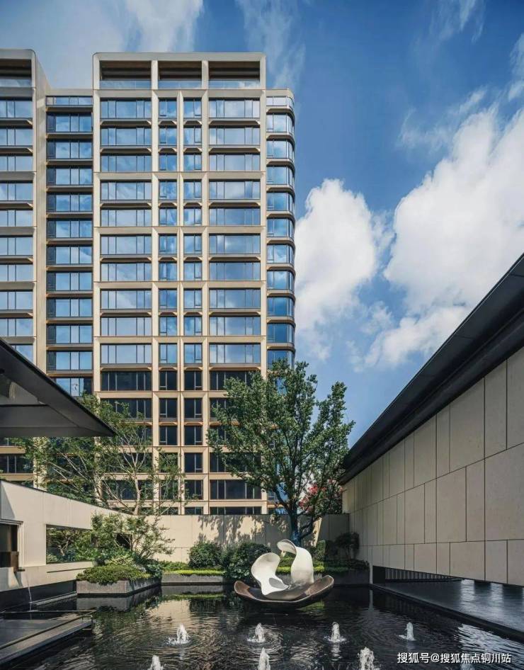 中信泰富·九庐新采用融合现代主义与古典主义的现代典雅建筑风格,将中西方文化与古今传承尽取其长,既体现了中式传统文化的神韵,又有西方拓新的哲学,即有古典主义的典雅,又具有现代简约的美感。外立面创新的采用干挂石材与咖金色铝板组合的形式,将建筑美学蕴藏于精工勾勒的线条语境里。
