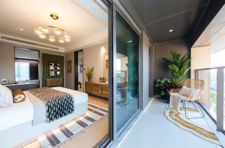 总统级主卧套房,搭配独立式衣帽间、独立卫浴、超大景观阳台,给予业主更强的居住独立性及舒适感。