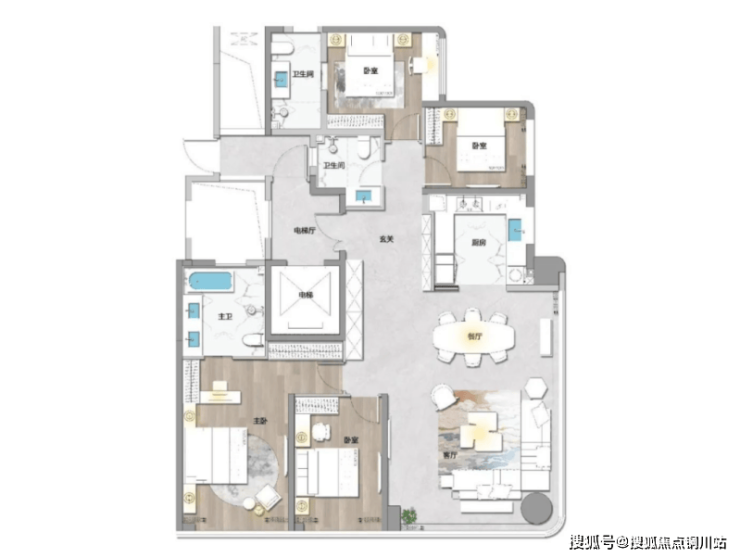 臻湾一品主力户型以建面约142㎡大户型起步,最大建面约175㎡,而这种「纯大户」的物理门槛,既实现了总户数更少(户均可享更多的社区资源),又保障了邻里圈层的纯粹性。