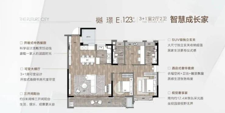 而在《美的云璟》可以买到总高17层左右的131平户型。