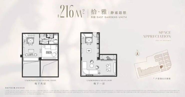 以项目5号单元为例,建筑面积216平,总高3层,地下一层5.5米带夹层,地下室面积就达到120m²,另外有露台、花园等,项目平均附赠也达到了约60%!
