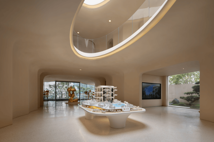设计打破“方盒子”的传统居住系统,建筑以大地景观的形式呈现,让建筑、自然与人无界相生,独树一帜的灵芝建筑给人塑造一种极具艺术感、未来感的生活空间,同时通过“垂直森林”“空中花园”“墅质空间”等不与他同的设计理念,赋予城市人居更强的自然栖居感。