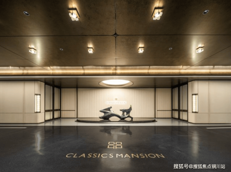 苏州首个半岛酒店式车马院,高约6.3米、鎏金格纹重顶车库,随动灯光、艺术玄关、水磨石地面、金属格栅吊顶...引领豪宅归家排场。