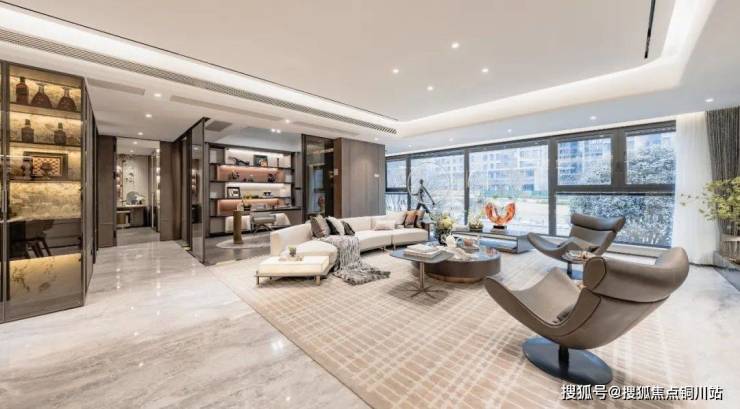 方厅LDKG:整体户型设计中,约60%是社交空间,40%是居住空间,保证业主在家中也能平衡生活与事业,是为徐州CBD大老板定制的大平层。