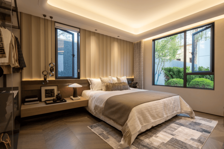 步入南向主卧的私密领域,独备衣帽间、洗浴空间的星级套房,将尊崇感与私密性推向极致。