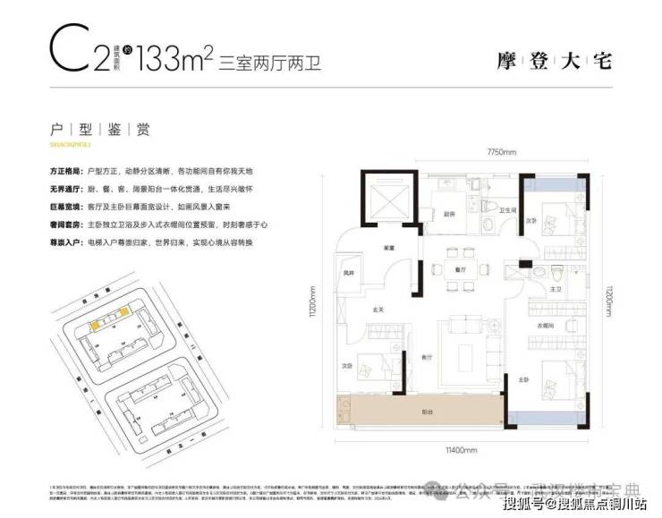 专梯专户布局,私密性更高,整个户型十分的方正,南向大面宽阳台,主卧以及北向次卧均带大尺度飘窗,有一定的拓展面积;三个房间有所隔开,各自的私密性更好。