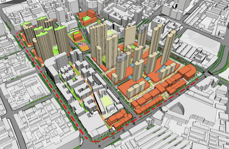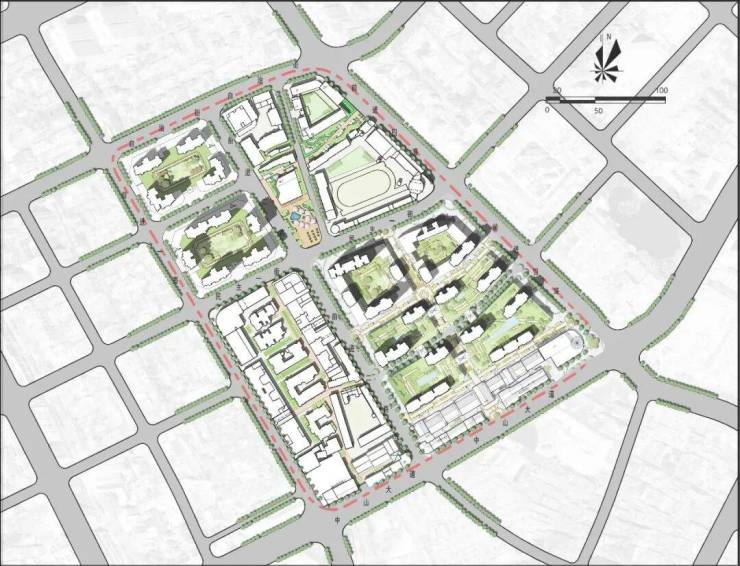 规划设计中充分考虑基地丰厚的人文底蕴,拟打造一个集“文创办公+ 精品体验式商业+高端商业+ 微型艺术公园+ 活力居住”于一体的特色型文创社区,结合周边历史文化资源,发展珠宝首饰设计、工艺美术等产业,形成文创办公产业集群;引入休闲娱乐、特色零售、餐饮美食等精品体验式商业,以及国际名品旗舰店、国内顶级品牌展示店等高端商业,与周边商圈形成互补共融的格局;打造具有艺术展示、驻足休憩、观光摄影等功能的微型艺术公园,聚集人气,营造高品质的空间环境。