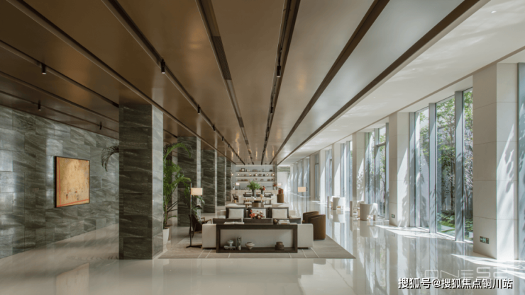 美术馆一般的大堂,这个高度瞬间就让你有一种膜拜感,庭院里的树影触眼即美。