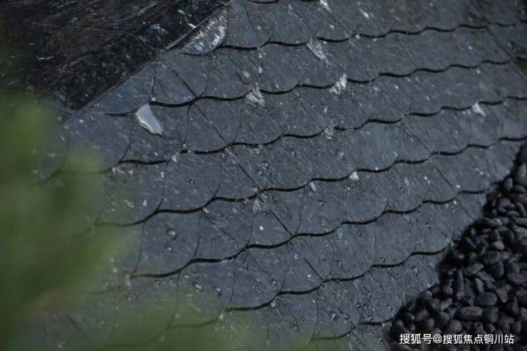 穿过门庭,踏上一段曲折回转的连廊“水流云在”,所谓欲扬先抑,以连廊作为大门与主景空间的情绪过渡,围合成一方天井与锦鲤池,似是桃花源中“山有小口,仿佛若有光”的另一种呈现,正是克制内敛的东方意境表达。但情绪虽“抑”,景观细节的呈现却丝毫未减。