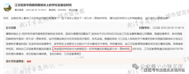 根据武汉城市留言板的回复,这个学校将会参照一初学苑模式来打造高品质九年一贯制学校。