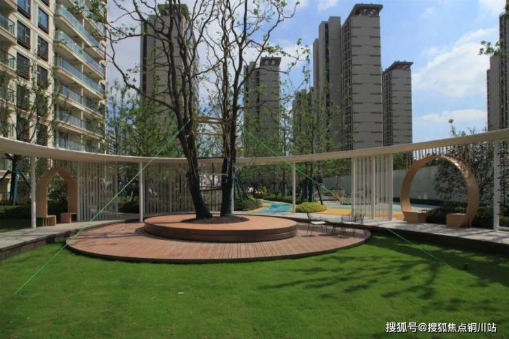无锡山河九里二期大树聚场,打破年龄界限、场地界限、功能界限,景观空间把全龄人群功能活动联动融合,形成社区的活力最热点。