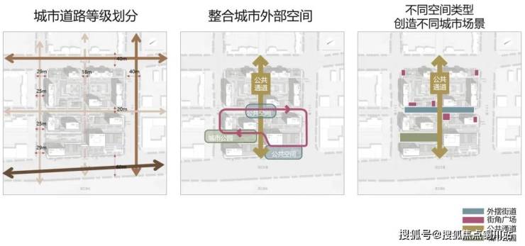 小街区公共走廊的规划模式将地块分为东西两个院落。通过围合式景观营造经典的三进院落空间层次。