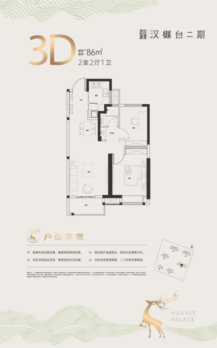 4、主力户型以86㎡、109㎡为主,更加聚焦刚改客群,功能性与舒适度兼具。约86㎡两房,总价仅需99万起,低门槛为刚需减负,是二环芯的入门佳作。