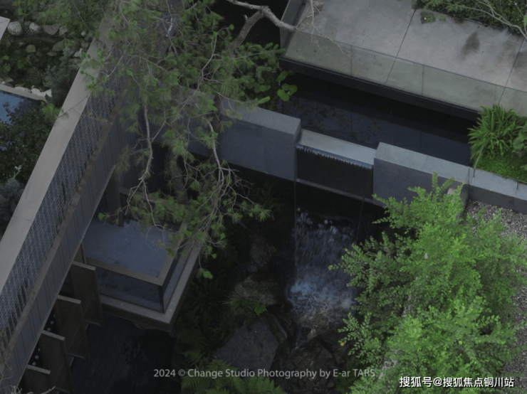 丘山书吧、悬溪茶室、大树剧场、溪畔大树、金属廊架