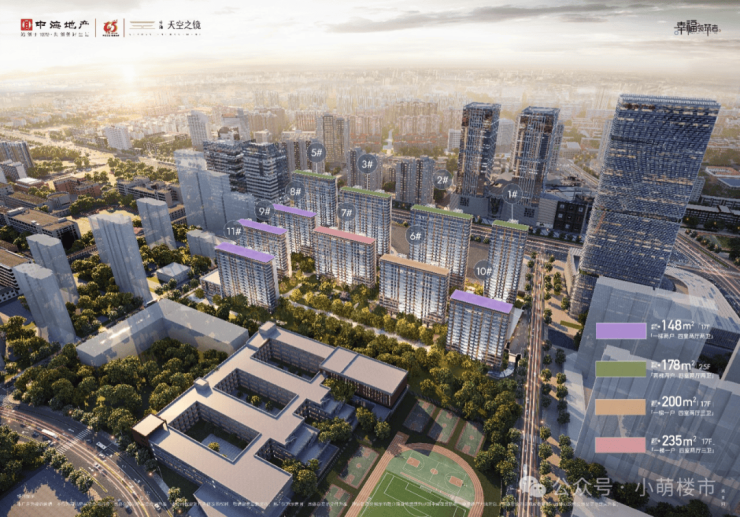 项目总建筑面积147879㎡,占地面积47127㎡,容积率2.9,绿地率36.75%,规划10栋住宅,846户(2#楼、3#楼、5#楼包含41户居住公寓),分为A、B两个组团,北侧为4栋25层高层,其余均为17层小高层,小高层为一梯两户/两梯两户,高层为两梯两户。