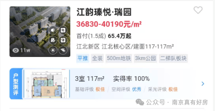 临江的江韵瑧悦璟园,是去年南京第一个小面积四代宅,靠产品出圈攒到了非常高的关注度;