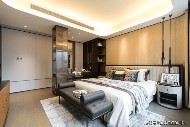 双套房系统形成"动静分离"的居住形态,主卧套房配备独立卫浴与衣帽空间,次卧套房预留多功能使用场景,既满足三代同堂的居住需求,又确保每位家庭成员的私密尊享。
