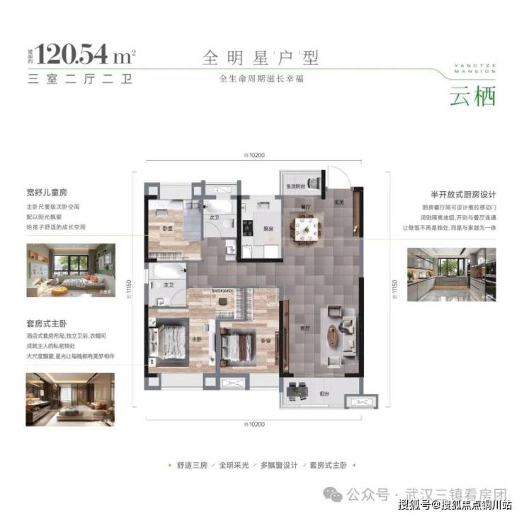 约108㎡【3房2厅2卫】双卫设计,高利用率,空间更阔绰