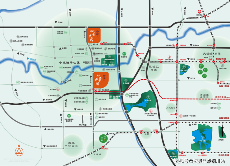 项目紧邻永旺,都处在中北的商业核心,西青道、天和路(万卉路延长线)、外环西路围合核心区内,紧邻地铁2号线曹庄站,紧靠永旺商圈,10分钟之内即可到达南开红桥,与市区无缝衔接。