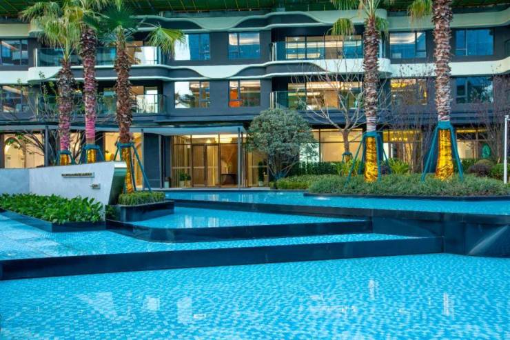 园林景观:规划打造夏威夷海岛风情主题园林,浓缩夏威夷群岛的九大特色景观,有挺拔的椰树、层叠的水景,让业主有度假般的惬意体验。