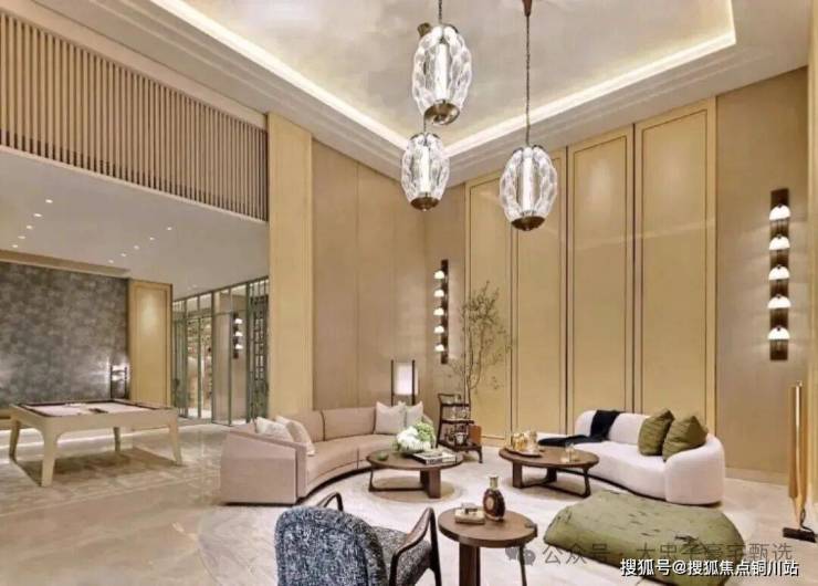 主厅核心区悬浮式定制柜体,银箔与丝绸在几何切割中构建中式基因,毕加索石材的天然裂变肌理成为天然艺术装置。瀑布吊灯以流体力学演绎东方留白,让光影在岩板表面生长出动态水墨意境。