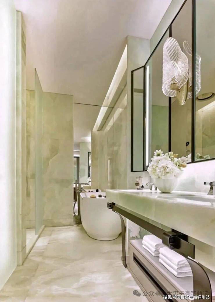 顶层下午茶区以淡绿为底,壁炉暖光漫过手绘地毯的肌理,将社交场域沉淀为冥想容器;主人房墙面缟玛瑙(Onyx)的天然流痕,也与一层屏风暗纹形成时空对位,光影在矿物晶体中生长出私密的诗。