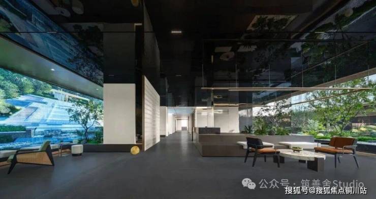 [晓月序厅]生活美学馆,占地约500平方米。其入口处以“明月松间照、清泉石上流”的诗意境界,巧妙地勾勒出城市与社区的界限,将喧嚣隔绝门外,引领您步入自然之静谧与休闲时光。馆内,独具匠心的双月形金属格栅,展现出绿城精湛工艺;精选挪威进口的蓝珍珠石材,以其独特的自然纹理,成为空间装饰的主旋律,营造出一种优雅而尊贵的氛围。