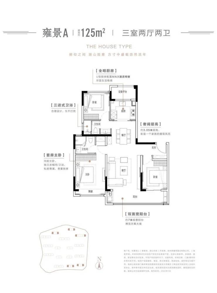 建筑面积约125㎡经典飞机户型,厨房、餐厅、客厅、阳台LDKB一体化设计,以超大空间纵享舒适生活尺度。休憩娱乐,会晤亲友,客来即迎,满足一切优质社交需求,承载丰盛的人生。