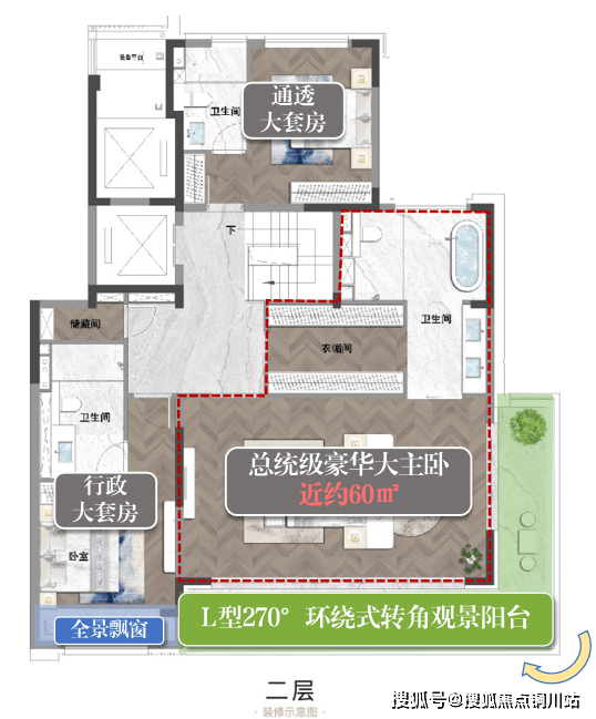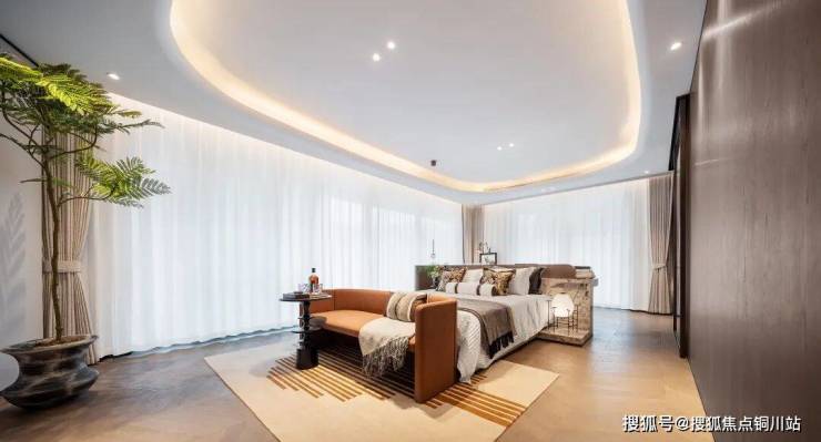 二层私密生活起居区,采用多套房式设计,为每一个家庭成员的奢阔隐私生活带来无限可能,总统级豪华大主卧套房近约60㎡,将近别人家半套房子的空间,在家就能享受星级酒店总统套房的极致体验。