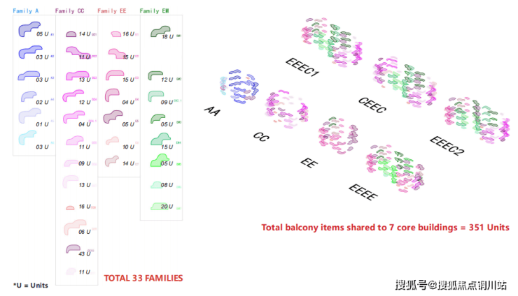 据不完全统计,整个社区里面大约有900多个云朵阳台,在规划之初有几十种云朵造型,而每一种造型都经过了周密考虑与尺度测算,比如衔接客厅的部分为了不遮挡视野而降低高度,而衔接卫浴空间的部分为了私密性则提升高度等,从而产生了每片云朵的弧度曲线的不同形态。