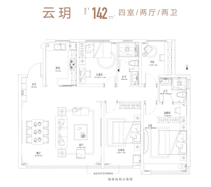 LDKBG一体化,约9.3米客厅开间,实现宴会级社交空间;三代同堂终极改善,主卧套间体系对标豪宅标准。