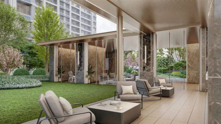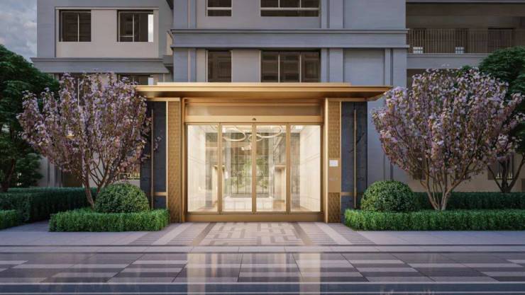 单元精工细节,以海棠作为迎宾树种、人脸识别智能门禁,仪式感与私密性兼具。以现代简约建筑立面,融合深灰石材与香槟金铝板,勾勒典雅气质。