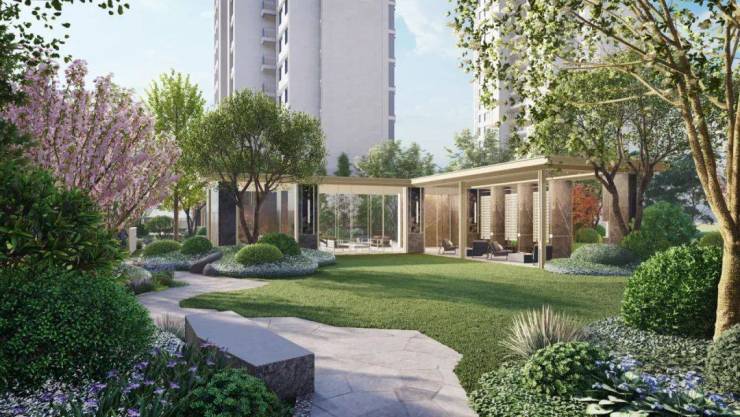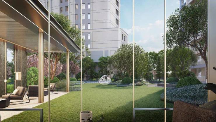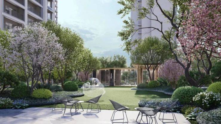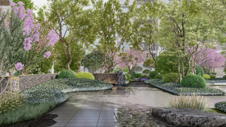 项目社区内部匠心打造“一轴、一心、一环、八花园” 五重归家景观立体园林。