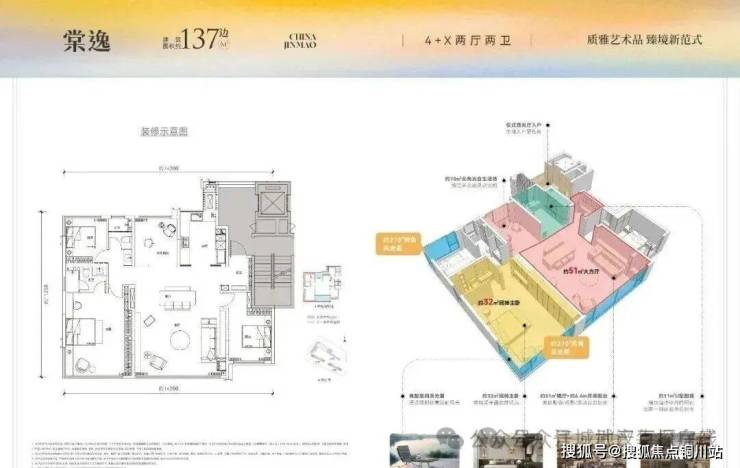 棠逸(建面约137㎡,4+X房2厅2卫):洋房边户;一梯两户,双开门电梯私密性好,可独享电梯前室;四叶草造型,浪费面积较少,三代同堂可互不打扰;约51㎡大方厅+约6.4米开阔阳台,家庭聚会、运动、观影可自如切换;南向主卧和北向次卧均带270°转角采光面,可俯赏四时风光。