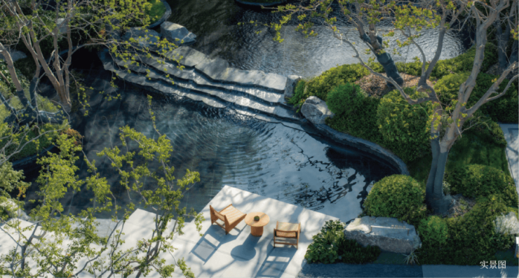 不同于建筑先锋气质的打磨,约300㎡云幕大平层西园景观,展现出独特的东方之美与文化之雅。设计灵感深植于扬州文脉,从石涛《西园雅集图》中汲取超然物外的雅趣,并以当代手法重构意境,细腻的园林空间布局,带来心灵的疗愈与感官的舒适,形成一种既返璞归真又无微不至的生活状态,在自然中慢行、亦在自然中回归。置身其中,曲径引幽思,水影映禅心,草木皆成趣,滋养着“栖于林下,心向云端”的生活哲学。