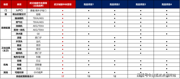 (武汉城建中央雲璟及竞品项目主选精装品牌和配置对比)