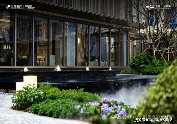 园林设计溯源“镜花水院”的设计理念,以水为脉,打造大面积镜面水景,构建“三重五景”的景观体系,景观层层展开,步移景异,营造出沉浸式的自然归家体验。此外,项目以水景串联园林节点,让自然与建筑和谐共生,赋予社区以诗意栖居的底色。