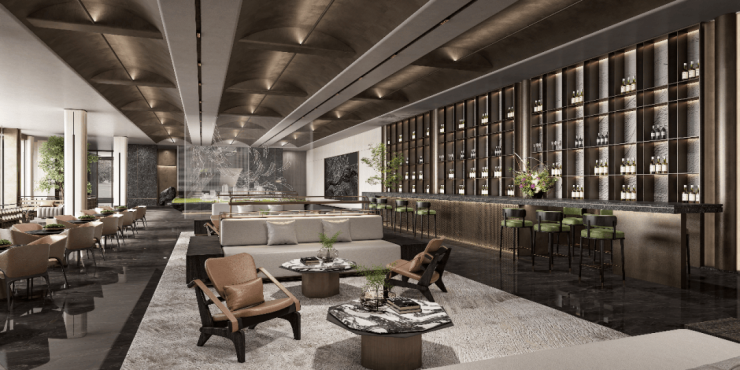 建筑设计:采用重工 “石材 + 铝板” 设计,同步世界【天幕之宅】,打造出优雅的建筑外观。