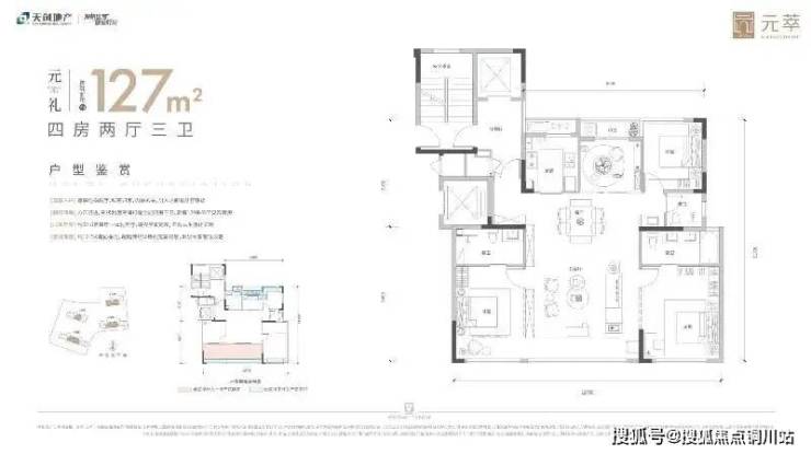 127平做成了四房三卫双套房的设计,功能性超级强,三代同堂或者二胎家庭也非常适合;南向面宽12.7米,采光面也是比较充足的,缺点是有个套房内的洗手间为暗房,除此之外,其他方面都很不错。