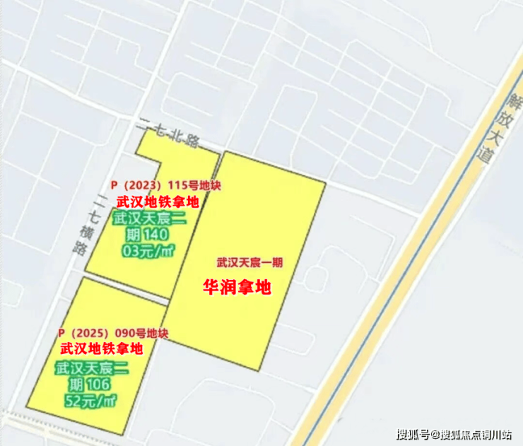 而紧挨着武汉天宸还有一块武汉地铁拿的地,同时在今年9月25日武汉地铁一鼓作气又拿下了原地块南面的商改住地块,也就是p(2025)090号地块,共同构成了二期地块,还听不懂的,看图。