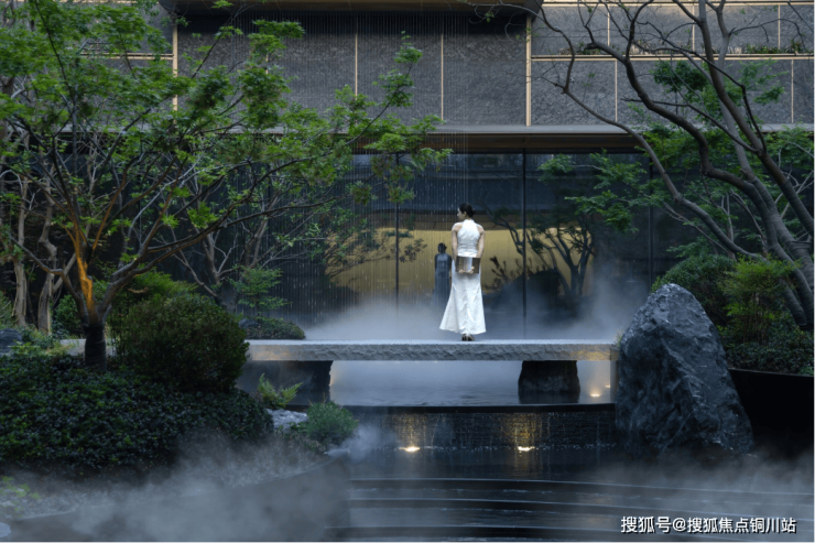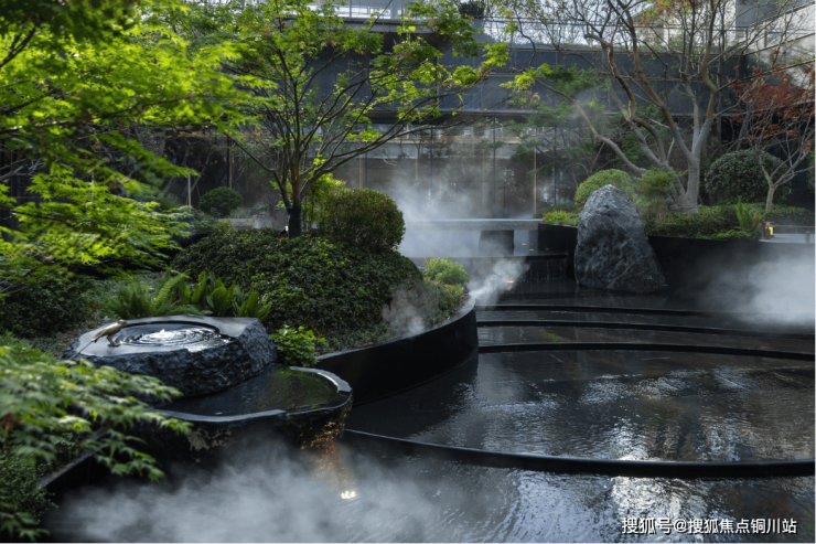 庭院中石桥、流水、树木交相辉映,松树为基,种植高海拔甄选树木,移栽时全冠保护、精准定位,在空中构建起浓密的林冠覆盖层,枝叶交错如天然华盖。